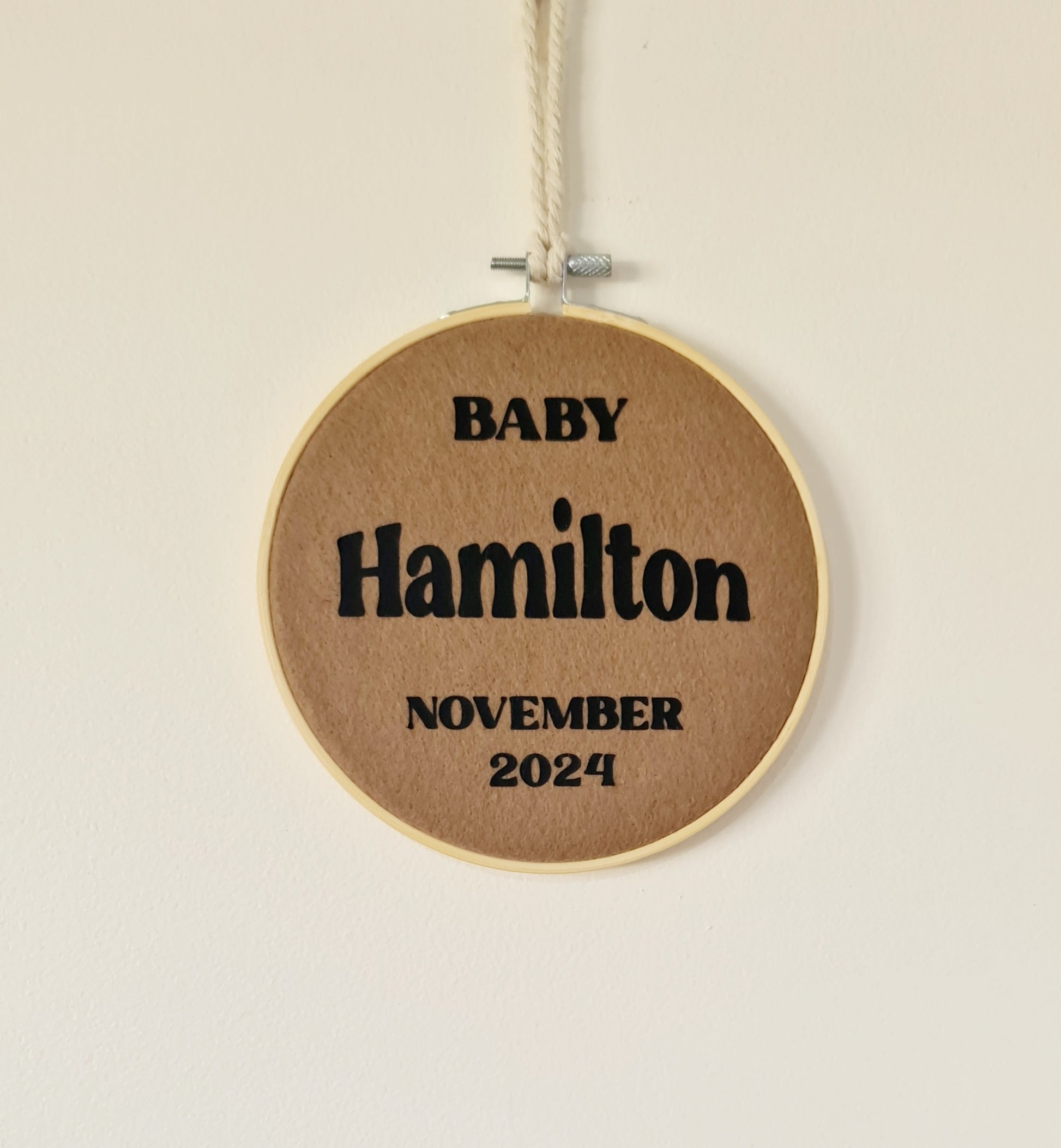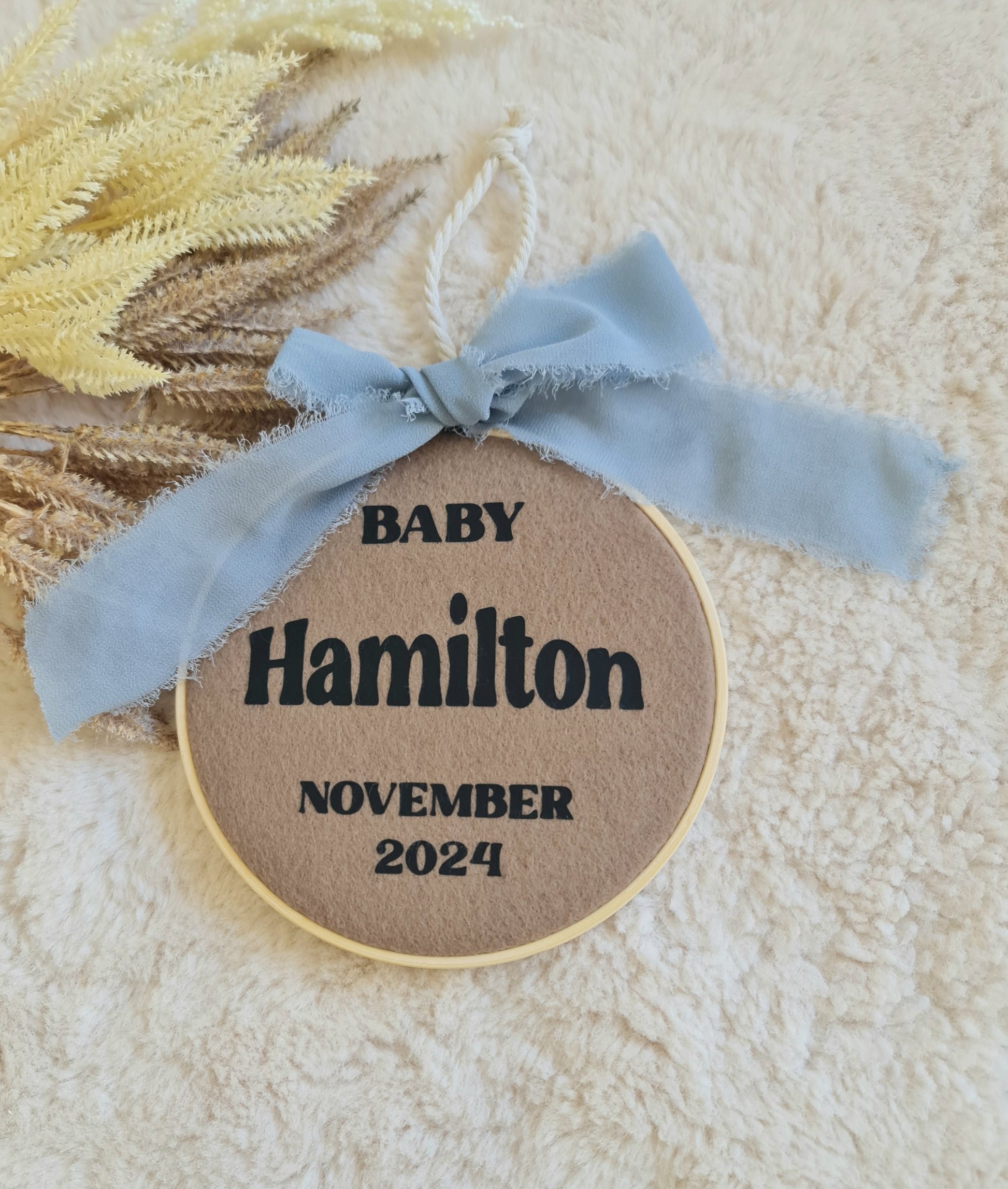 Introducing the "Hamilton" baby announcement hoop, made with quality felt material.