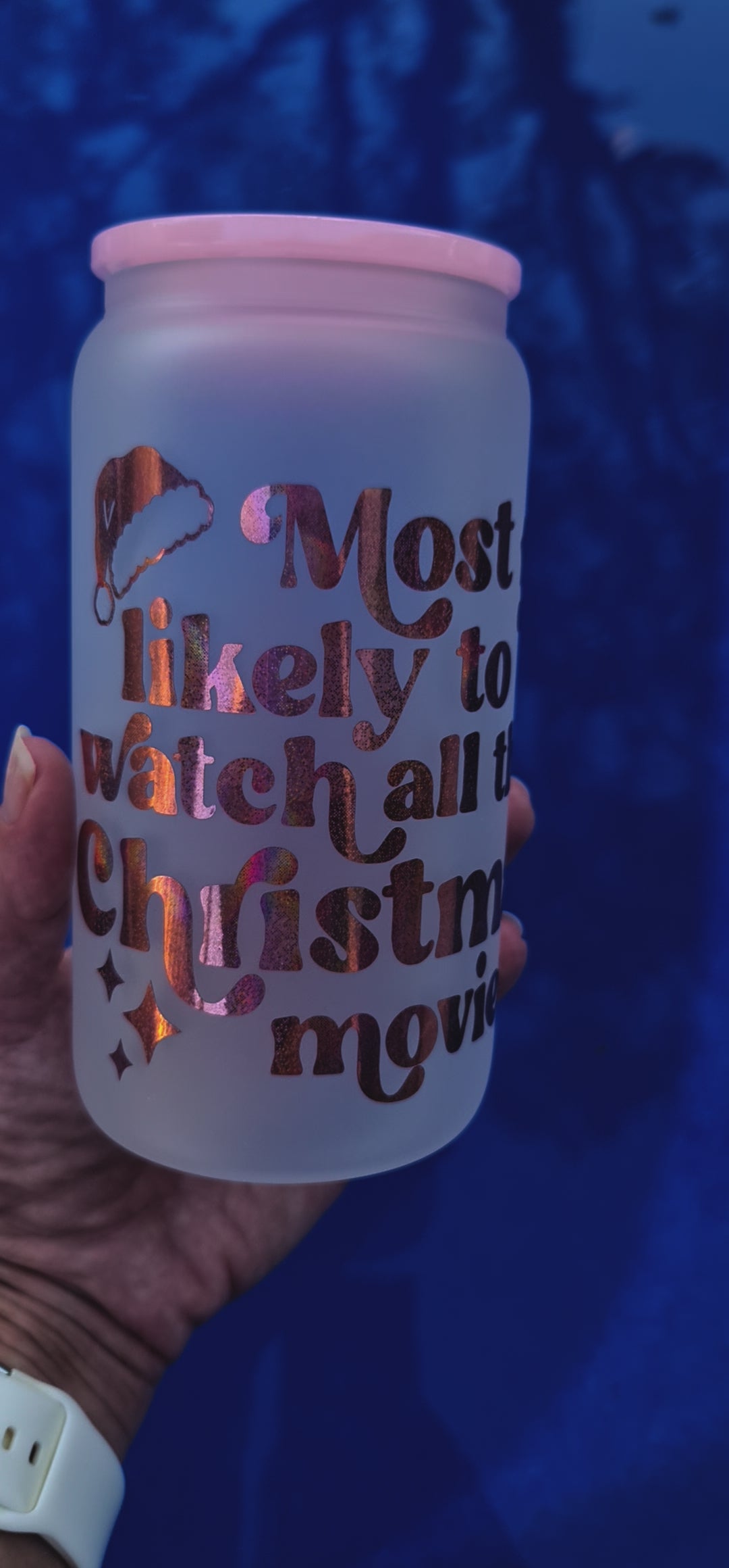 Cosy up to your favourite Christmas movie with our frosted festive glass cup.