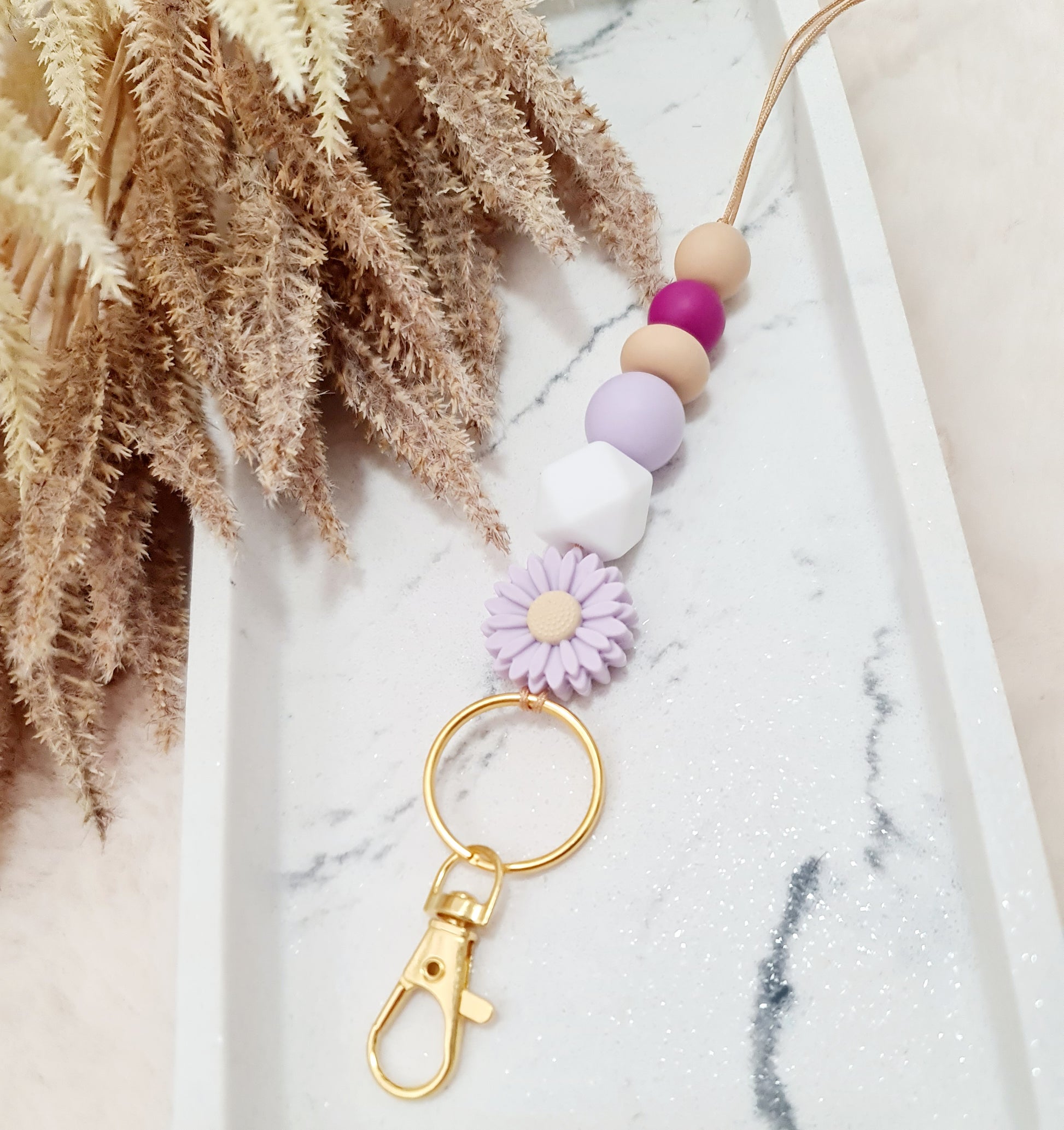 Our lanyards are made of silicone, wooden and clay beads.