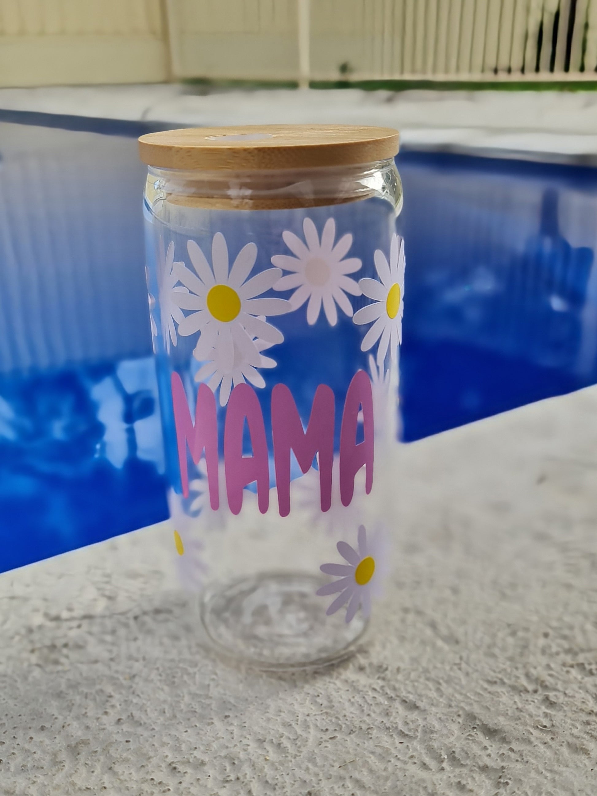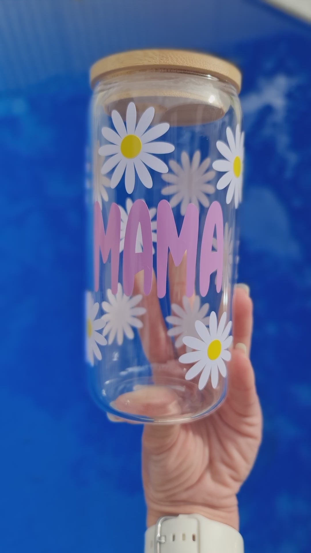 Floral Mama glass cup, a beautiful and elegant addition to your kitchen. This cup features a stunning floral design that is perfect for any occasion.