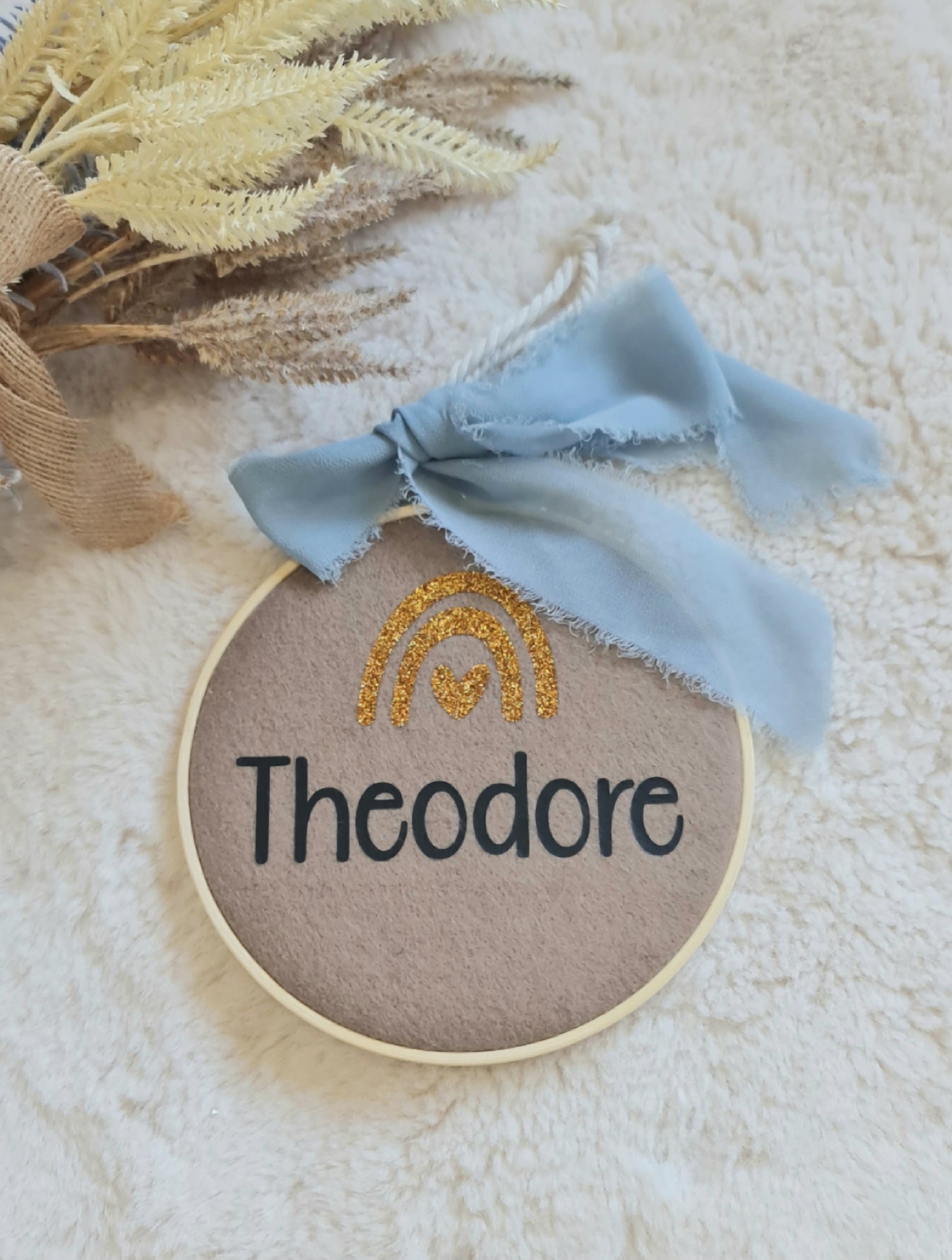 Personalise your nursery or kids room with our Name Keepsake Hoop. This beautifully crafted hoop features your child's name, adding a special touch to their space. Made with quality felt, it's a durable and timeless keepsake to cherish for years to come.